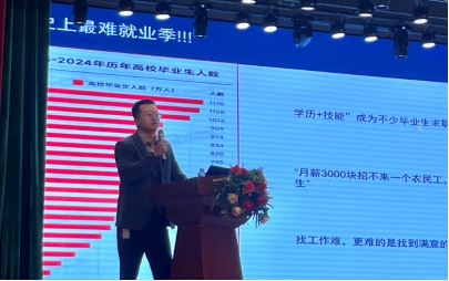 澳鹏数据科技有限公司中国区东北校企部门总负责人刘传盛进行了题为《数字经济下的行业前景与职业规划》的演讲。他从行业发展的角度出发,分析了数字经济下各行业的就业前景和职业发展路径,为同学们提供了宝贵的职业规划建议。刘总的演讲贴近实际,让同学们更加清晰地看到了自己在数字经济时代的职业发展方向。