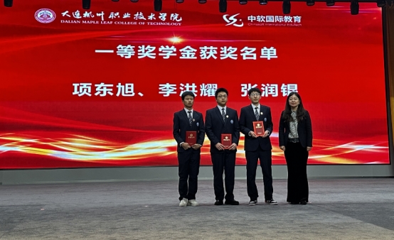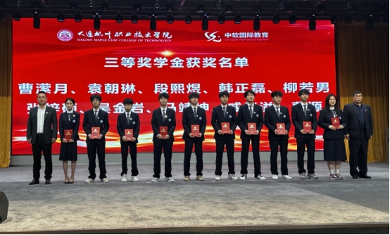 讲座结束后,活动进入第二阶段——2024-2025学年第一学期奖学金及优秀学生干部、先进个人荣誉证书颁发仪式。智能互联网产业学院教学副院长阎树昕宣读了获奖名单,随后,中软国际教育科技集团高级副总裁李佳历、大连枫叶职业技术学院高成林副院长、张冬冬副院长等领导分别为获得奖学金的同学以及先进个人和优秀学生干部颁奖。获奖同学们脸上洋溢着自豪的笑容,手捧荣誉证书,合影留念,记录下这难忘的瞬间。