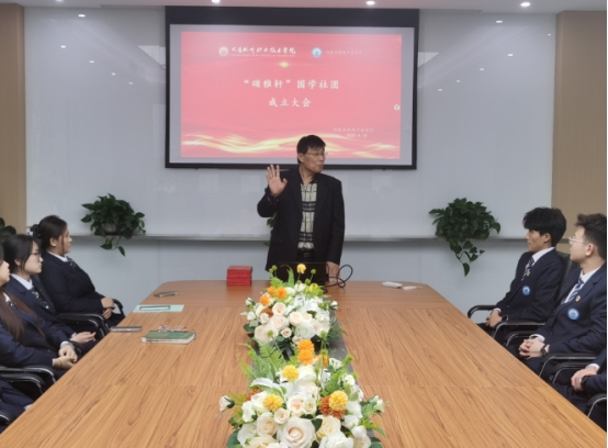 大会上,袁福庆院长首先发言。他深情地说道:同学们,国学是中华民族的瑰宝,承载着我们民族的精神与智慧。在当今智能互联网飞速发展的时代,我们更应从国学经典中汲取力量,让传统文化与现代科技相互交融。“颂雅轩”国学社团的成立,恰逢其时,它将为我们提供一个深入了解国学、传承国学的平台。希望同学们在社团中积极学习,不仅提升自己的文化素养,更要将国学中的道德理念、礼仪规范运用到日常生活中,以优雅的气质、高尚的品德去影响身边的人,让国学在新时代焕发出新的光彩,为传承中华优秀传统文化贡献自己的力量。