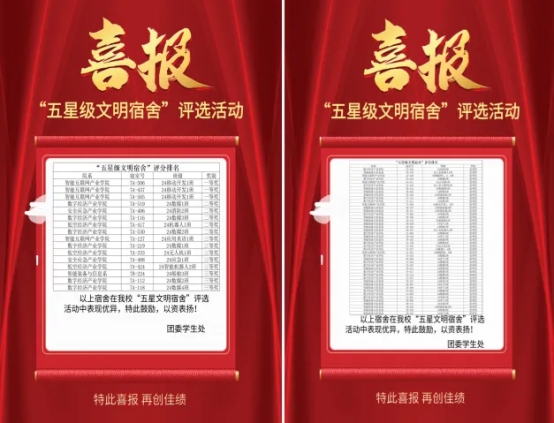 自评选活动正式启动,便迅速在全院师生中引发了广泛关注与积极参与的热潮。为确保评选工作公平、公正、公开地推进,五星级文明寝室的评选是由学生处组建了专门的评选委员会。委员会由经验丰富的社区辅导员以及各系学生管理干事构成。优秀班级的评选是由所有的任课老师构成,根据各班级的日常表现进行评选。他们秉持着严谨负责的态度,为评选活动的有序开展奠定了坚实基础。