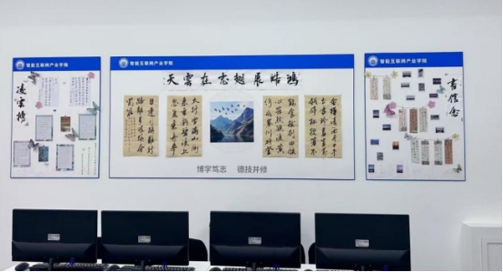 在文化墙展示阶段,各个教室的作品亮点纷呈。体现了“一个教室一个主题、一个班级一个特色”。有的教室以同一个世界同一个梦想“One World, One Dream”、鸿鹄展翅志在云天、奋斗青春逐梦未来... 这些作品不仅展现了同学们扎实的专业知识,更体现出他们对智能互联网产业的深刻理解与无限畅想。
